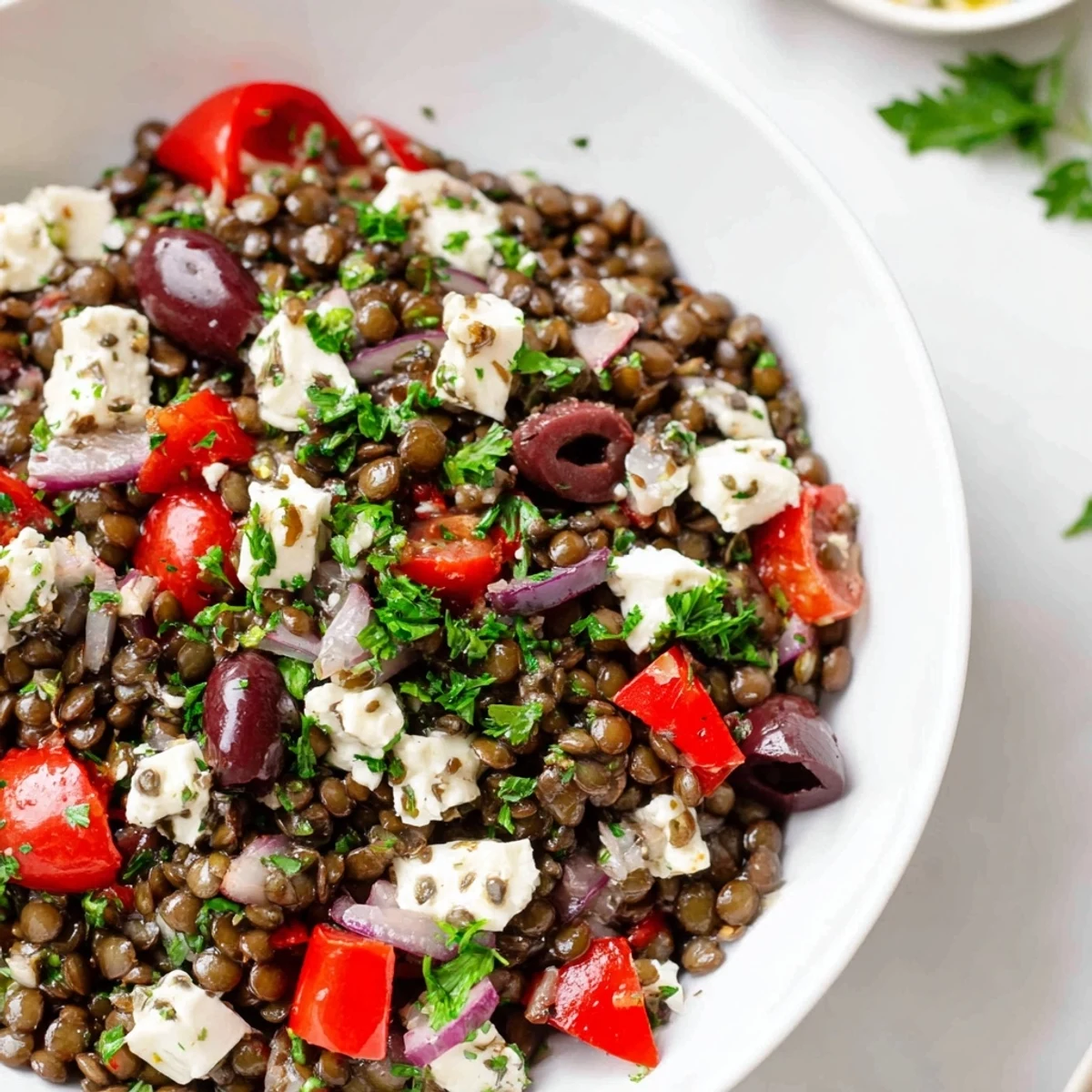 Dieser mediterrane Linsenalat vereint gekochte Linsen mit frischem Gemüse wie Tomaten, Gurken, Paprika und Kalamata-Oliven. Die würzige Feta-Käsekrümel verleiht einem kräftigen Geschmack, während eine selbstgemachte Zitronenkräuter-Vinaigrette das Ganze zusammenbringt. In etwa 45 Minuten zubereitet, ideal als leichte Mahlzeit oder Beilage.