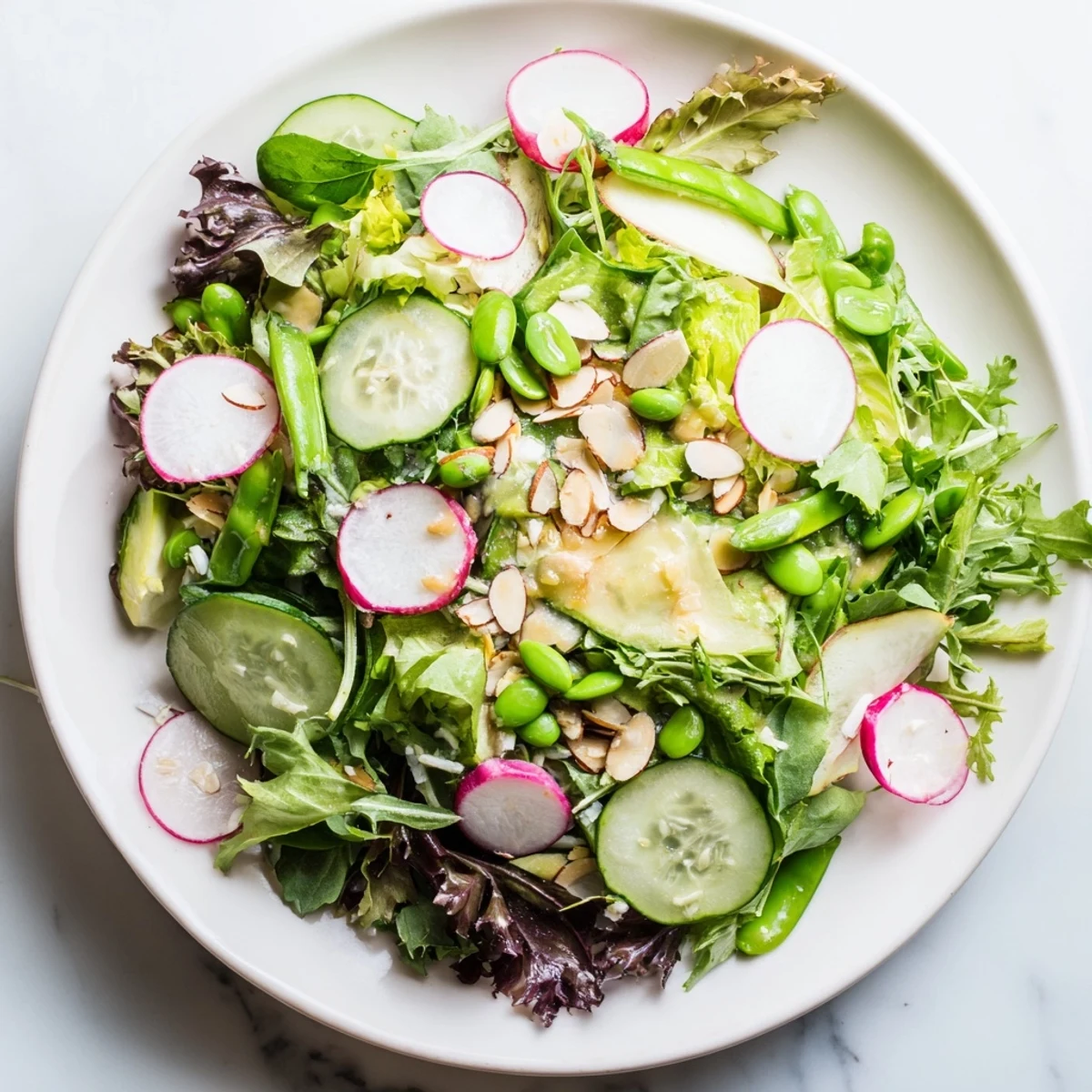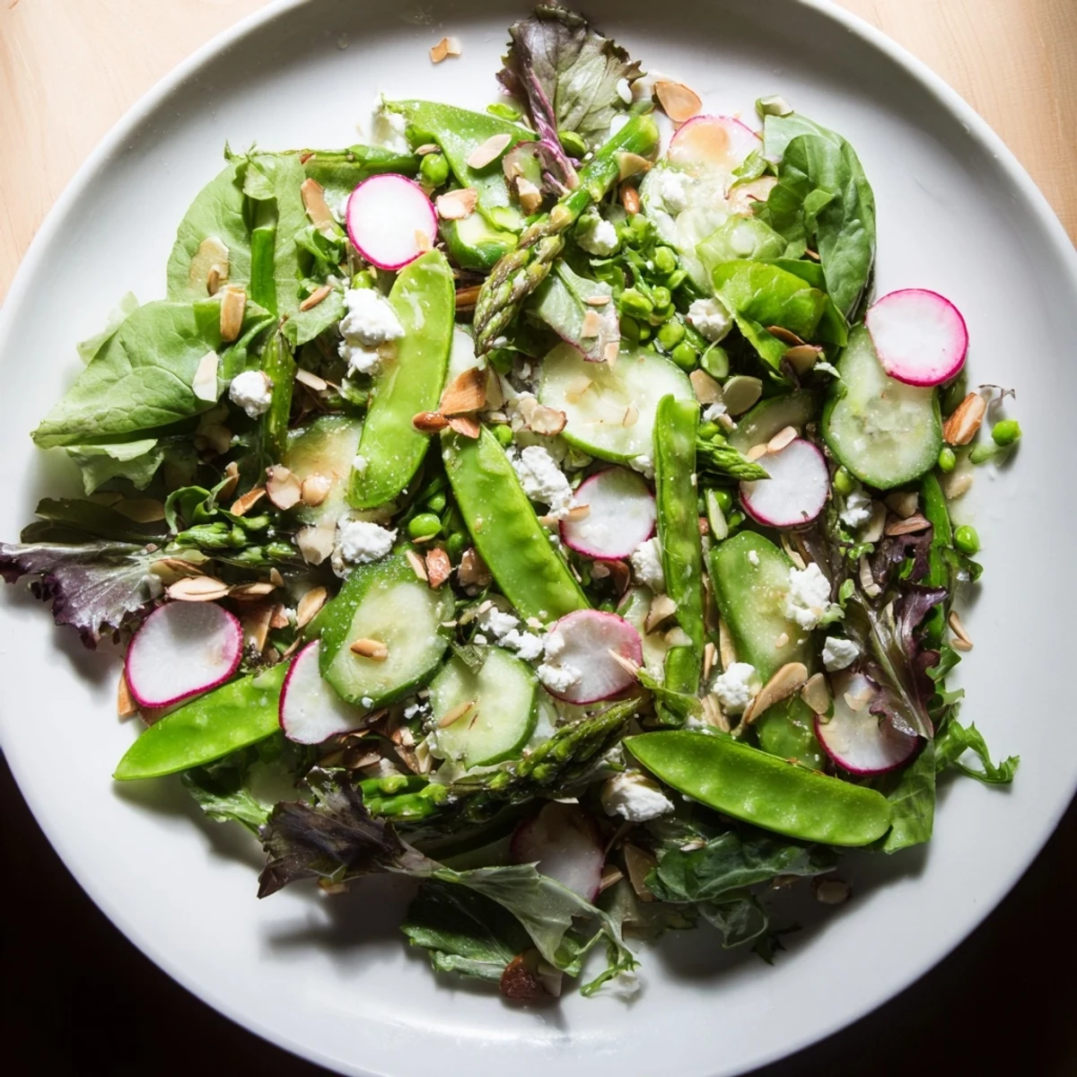 Dieser frische Frühlingssalat vereint zarte grüne Blätter wie Rucola, Babyspinat und Brunnenkresse mit knackigen Gemüsebeigaben. Das Dressing aus frischem Zitronensaft, Dijon-Senf und Honig sorgt für eine lebhafte, ausgewogene Säure, während geröstete Mandeln für nussige Akzente sorgen. Eine cremige Note bringt optional Ziegenkäse, der sich auch durch vegane Alternativen ersetzen lässt. Ideal als leichter Start oder Beilage – schnell zubereitet und voller Frische.